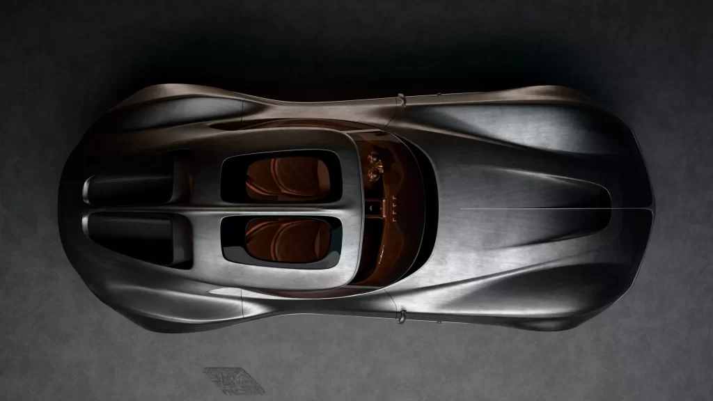- Curved rear fenders, quad oval taillights, integrated diffuser, iconic split rear windshield, and a roof “spine” evoking Bugatti style.