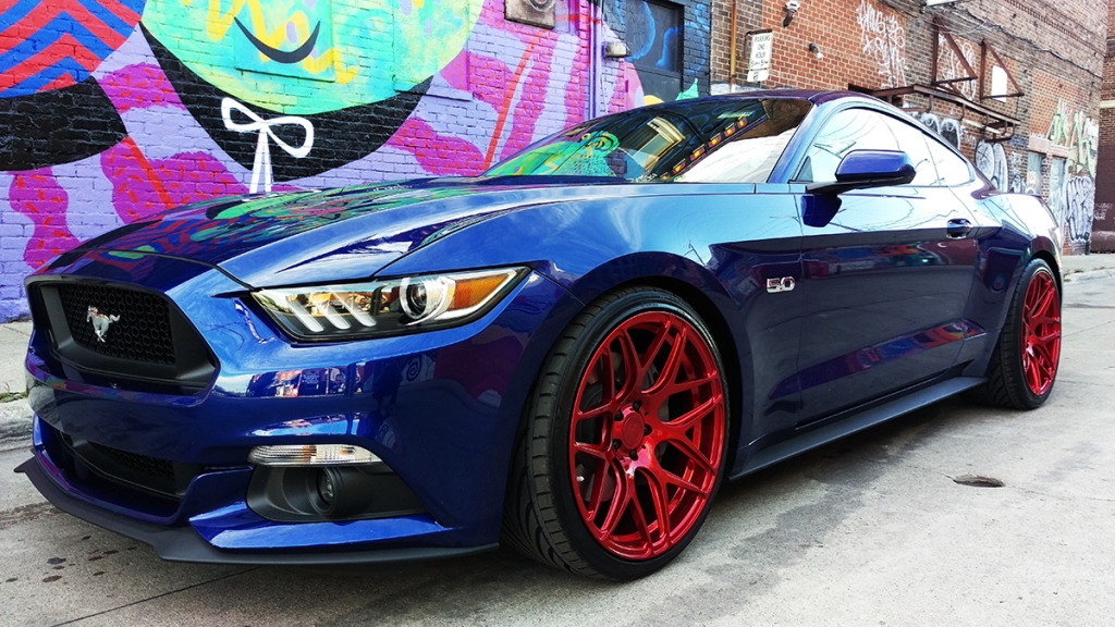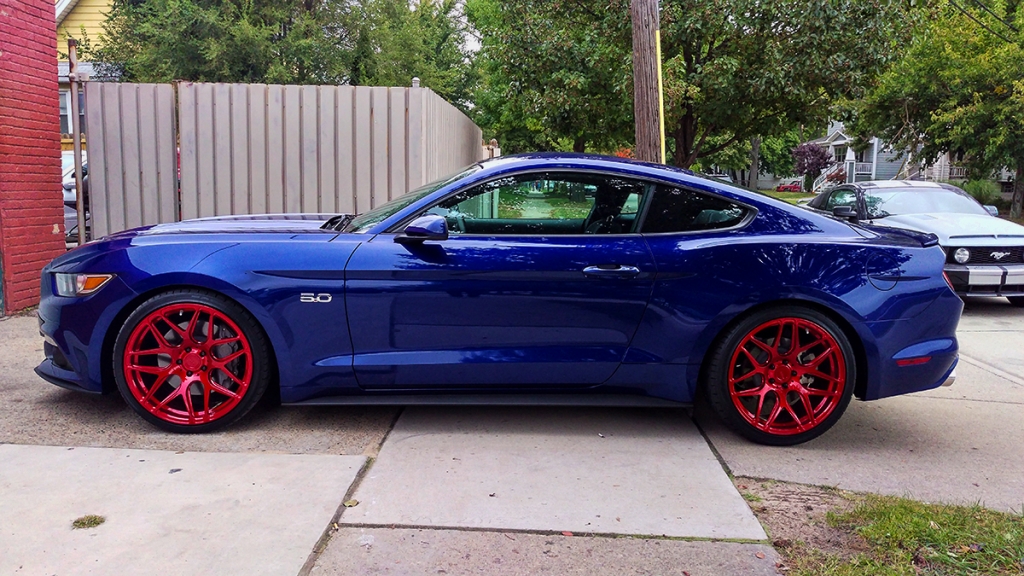 The wheels kill or make the car. This S550 one is obviously on the cool board. Essque, a guy from mustang6g forums, decided to go candy red on his beloved MRR FS01 wheels and as a result those match Essque’s blue GT perfectly.