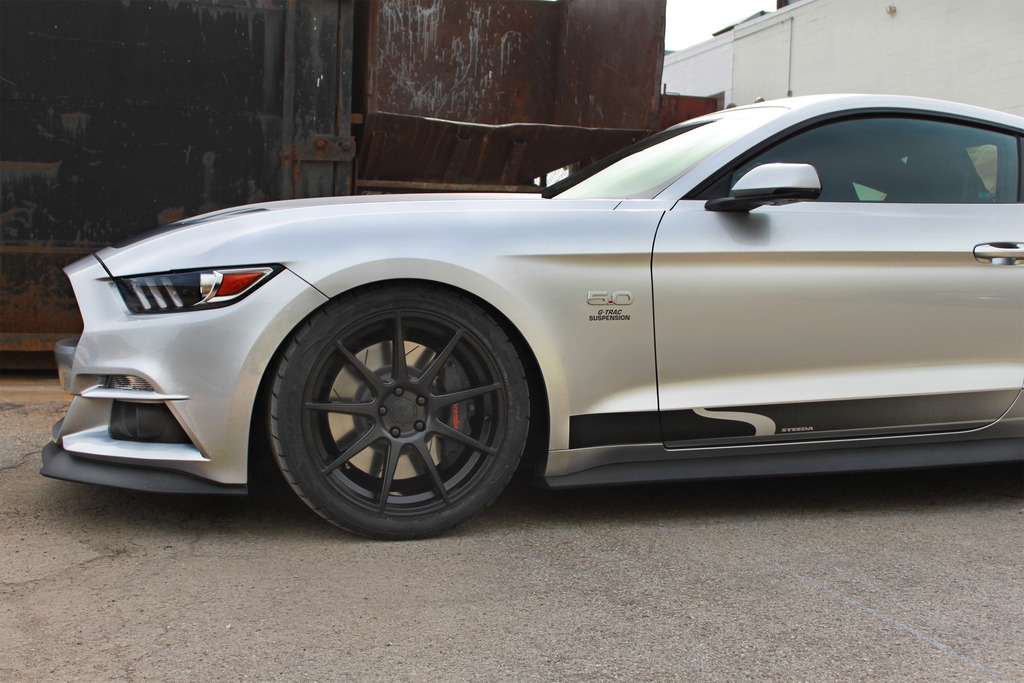 The exterior of this muscle car features Steeda’s Aerodynamic Package (custom front fascia, aggressive lower chin and rear spoilers), staggered 20”x9” and 20”x10.5 Velgen VMB9 wheels wrapped in, of course, Nitto Tires ( NT555-G2 Summer Ultra High Performance).