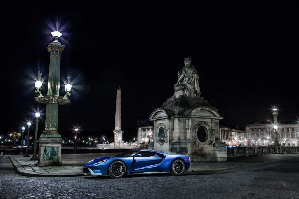 Absolutely amazing photo shoot in Paris of a $400k American supercar – the Ford GT with a twin-turbo V6 that develops 600 HP. It has carbon body, real wheels drive, 7-speed transmission, double clutch and less than 1000 units will ever be made.